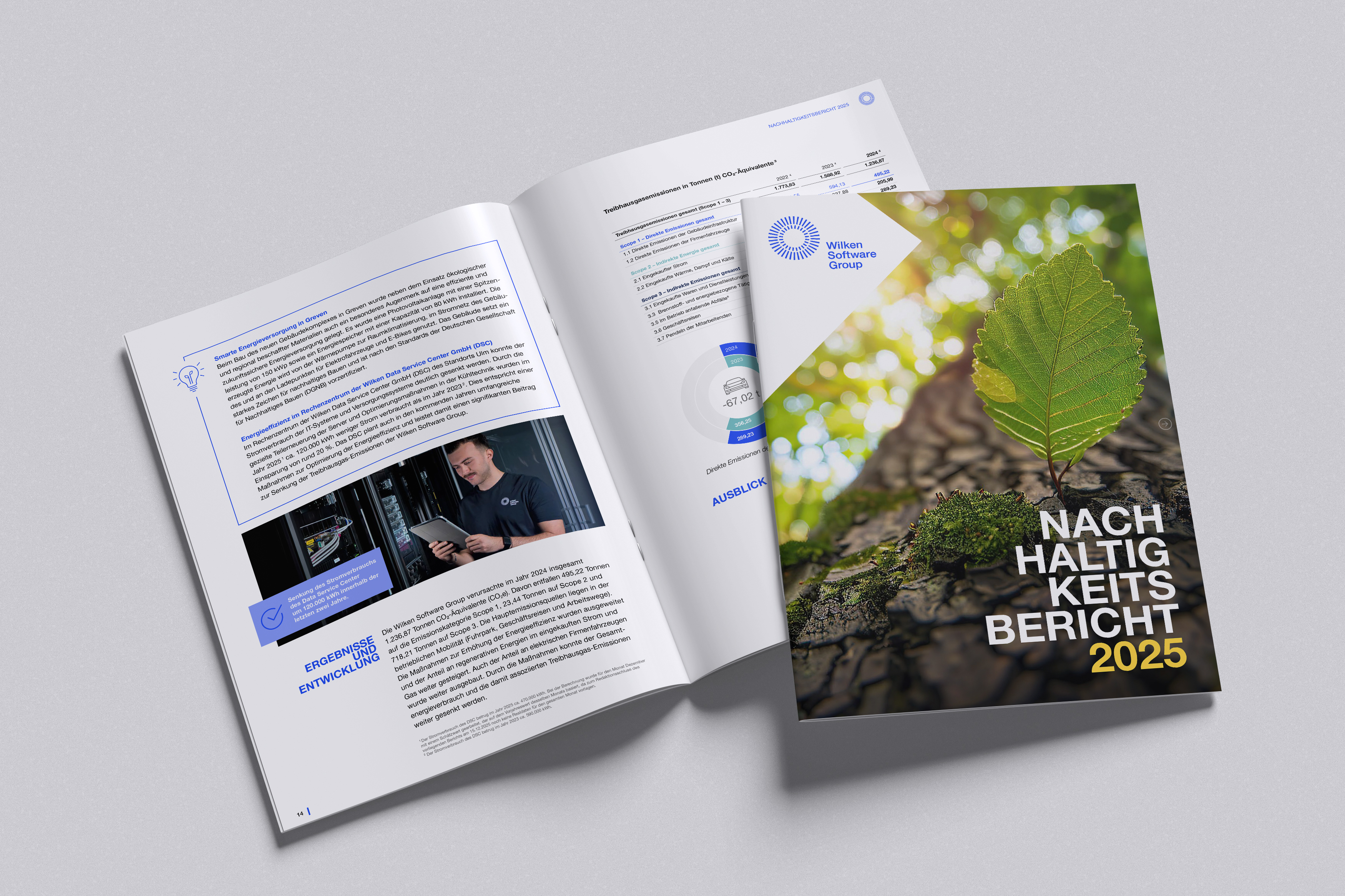 Im Berichtszeitraum reduzierte Wilken seine Treibhausgasemissionen deutlich. Beispielsweise verringerte das Rechenzentrum der Wilken Data Service Center GmbH in Ulm seinen Energieverbrauch durch Servermodernisierung und optimierte Kühltechnik um rund 20 Prozent innerhalb von zwei Jahren. Mit dem neuen Standort in Greven – ausgestattet unter anderem mit Photovoltaikanlage, Energiespeicher und Wärmepumpe – setzt Wilken zusätzlich auf eine von Grund auf energieeffiziente Infrastruktur.